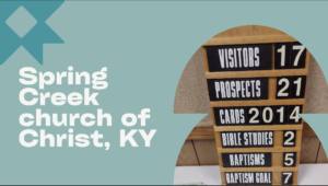 Spring Creek church of Christ, Kentucky: David Morse (elder) reports, “We are encouraged by the fact that three of our current prospects have agreed to Bible studies last week. We will not count those in our summary numbers until the studies actually begin. Our white group wrote compassion cards this past Sunday, following morning services and prior to our evening services. While we have a good number of prospects on our list, our weekly totals for compassion cards are low. Our challenge for the next few weeks will be to add to our list of prospects needing compassion cards. Numbers for the week:  Visitors – 17, Prospects – 21, Compassion Cards – 2014, Bible Studies – two, Baptisms – five, Baptism Goal – seven.”