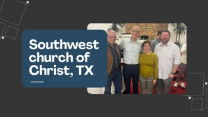 Colleyville church of Christ, Texas: John Garza (regional trainer) reports, “We have a few Bible studies taking place. One is scheduled for Friday, and we ask for prayers as Grant and Lisa will be teaching them through baptism and MDR. Additionally, we have 11 prospects— all at various stages in the process of getting the Bible study.”