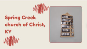 Spring Creek church of Christ, Hickory, Kentucky: David Morse (elder) reports, “As cold weather moved into our area, a couple contacted us for assistance after receiving the House To House, Heart To Heart publication in their mailbox. For the past several years, they had been homeless. They were recently gifted a camper and moved to a location near our building. Both were raised as Baptists but have attended church of Christ services in other cities in the past. This past Sunday, both attended worship services at Spring Creek and began the Back to the Bible study, completing the first lesson. We plan to meet with them again this week for Lesson 2. Here are our numbers for the week:  Visitors – 13, Prospects – 37, Cards Sent – 1,191, Bible studies – 6, Baptisms – 2, and Baptism Goal – 7.”