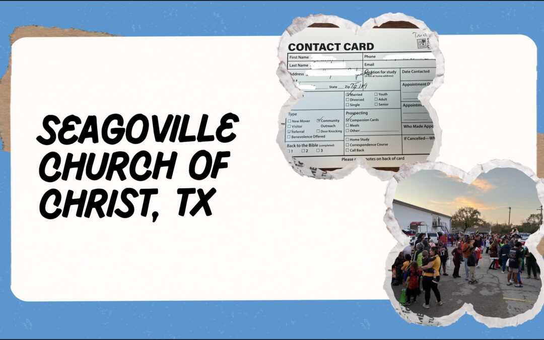 Featured Congregation: Seagoville church of Christ, TXEditor’s Note: Congregations that struggle and even fail often struggle with contacts and prospects. We emphasize these two steps throughout the training process. The online curriculum is robust with resources, videos, tools, and action points. When congregations trust the process, they succeed. Listen to Kodie Martin’s words to understand how the process works for them. Overflowing with Contacts The first two steps in the HTHSOE model are contacts and prospects. We have been working hard to train our members on how to make contacts. This started from referrals using the bookmark. We have received three more prospects from members turning in contact cards. This year, we focused on making contacts at our Trunk-or-Treat. Our members turned 12 of these contacts into prospects. These are the ones who asked for prayers and/or cards, so we will begin prospecting them in the near future. We have been blessed with a good number of visitors. Jorgina and Melissa are two recent examples who came through invitations from church members. This again shows the importance of relationships and invitations to services. This past Sunday, we trained our door and pew greeters how to greet visitors, invite them to eat, and get contact card information. These methods have been cost-effective and extremely fruitful. Everybody is on board, and this next Sunday, we hope to practice what we have learned. We have used simple, targeted advertising on Facebook, which made our last few events explode with visitors. All this goes to show that simple invites, handing out cards, and digital advertising can be incredibly fruitful for increasing the number of visitors, and we have been blessed with more contacts/prospects than we can work at one time. Congregational ReportsWelcome, St. Andrews Road church of Christ, South Carolina: We welcome the St. Andrews Road church of Christ to the House to House/Heart to Heart School of Evangelism. This is a strong congregation that serves as a bright light for the state. The elders and the preachers are skilled leaders and teachers who are strong in faith. Pray for them as they organize and implement the HTHSOE model. Hatton church of Christ, Alabama: Chris Miller (preacher) reports, “We continue to have great results and participation. We also had another baptism this past week on a job site. Cynthia Forsythe expressed that she believed in Christ but had never been baptized. We were able to study with her on her back porch and then baptized her in her new pool. We are also working with a number of new movers and first-time visitors.” West Huntsville church of Christ, Huntsville, Alabama: Paul Owen (associate preacher): “Our new preacher is a huge help to us, and our evangelism efforts are going well. We had another baptism, Hunter Trewin. He was a visitor who said he had never met such loving and friendly people!” Fayette church of Christ, Alabama: Josh Taylor (deacon) reports, “Our congregation is making great progress in preparation for our food drive. It will be this coming Saturday. With the recent government shutdown, we expect several visitors, and our goal is to focus on Bible studies. Please pray for our success as we head up for this annual year-end event for our congregation.” Central church of Christ, Saraland, Alabama: David Dixon (preacher) reports, “We have one Bible study ongoing, with another about to begin. We are having a Thanksgiving meal in two weeks, which we always use to invite contacts. We pray that we will have some interest in feeding their souls as well. Things continue to be steady. Not a day goes by without an opportunity presenting itself. If we let God’s will be our main concern, we will find that evangelism takes care of itself.” Petersville church of Christ, Florence, Alabama: Adam Richardson (preacher) reports, “The Petersville church family continues to send compassion cards, and 25 went out this past week. The Bible study for today was postponed, but we will follow up! There is another study set this Wednesday for an energetic couple who have very unique spiritual backgrounds. They are enthusiastic, and I have no doubt that when they see the scriptures, they will obey. We plan to set up the coordinators’ meeting for after Thanksgiving, and we will renew commitments as we look to the New Year. Evangelism is on the elders’ minds as they greet the congregation every Sunday morning before worship; they are setting a good example. Finally, there is a family that has been absent off and on for over a year. The husband has been back for several months, but his wife continues to struggle and has only been present once many months ago. She attended services with her entire family yesterday, and we have encouraged her to continue. Pray she will be touched by her reception at worship!” Creekwood church of Christ, Mobile, Alabama: Tucker Presley (preacher) reports, “We currently have one Bible study ongoing. Another one is being set up this week. Cards are still being written every week. Soon, we will make visits to contacts who came to our Trunk or Treat event. We hope to set up Bible studies or at least begin a discussion about the Lord.” Cedar Grove church of Christ, Andalusia, Alabama: Josh Holloway (preacher) reports, “We still have ongoing studies with Nena, Terry, Michael, Randy, Matt, Lontae, Casheria, and Shelia. A man named Mike has also agreed to start studying with us in the future. This week, while we made transition visits, another couple (Donnie and Joyce) agreed to start having weekly Bible studies starting next Saturday. We were able to make several productive visits this week. We are looking forward to another congregational door-knocking event scheduled for November 22. We are also cooking and delivering breakfast to all of our first responders on Thanksgiving morning. We are looking for ways to adapt that outreach to make contacts. We may have our be