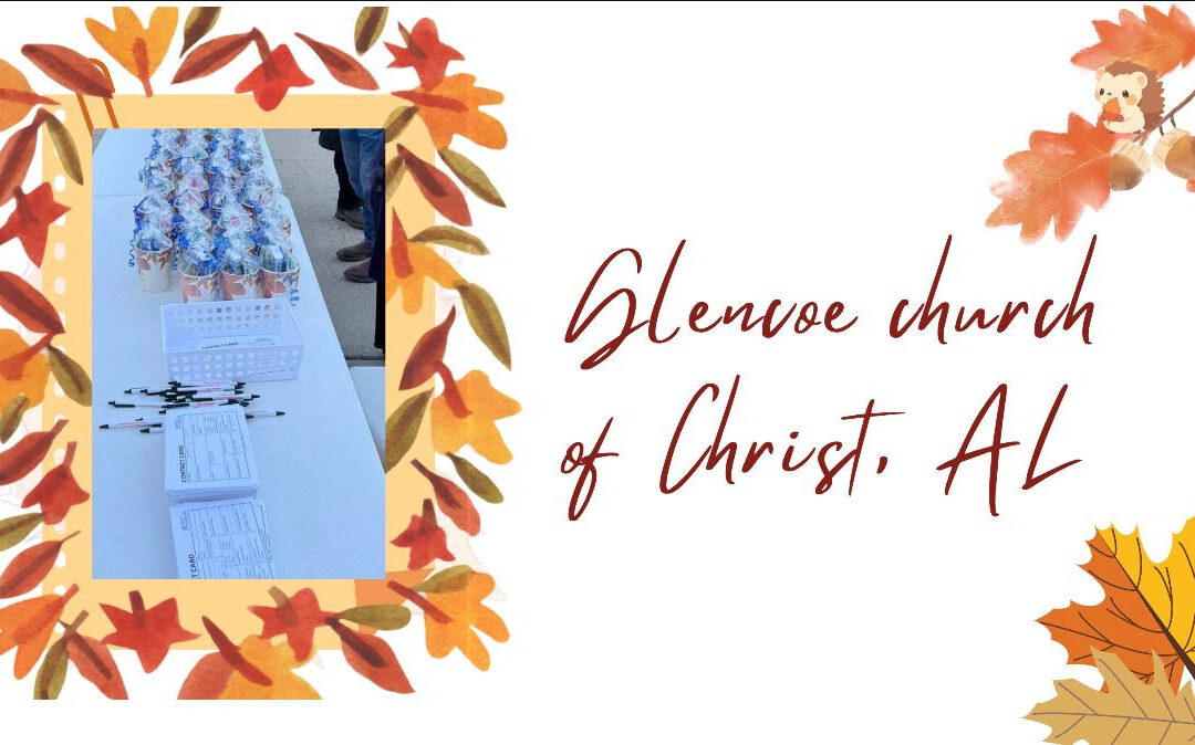 Featured Congregation: Glencoe church of Christ, ALEditor’s Note: Community events can be challenging for congregations. The logistics, participation, and resources must align in order to reach people. One of the most successful annual events is the Fall Festival. For some, it is the biggest event of the year. The challenge is to maintain focus on the One Mission. Recently, the Glencoe church of Christ succeeded in collecting over 90 contacts and engaging visitors with the Bible and invitations to worship. The Goal of a Community Event The Glencoe congregation held a successful Fall Festival, attracting over 400 visitors. We asked them why they came. To our surprise it was because of our advertisement on our local community Facebook pages. We served soup, hot dogs, desserts, hot chocolate, coffee, and more. We gave out 85 coffee mugs to the adults who came. In addition, we gave several Apologetic Press study Bibles to those who either did not have one or needed a new one. We had candy, games, and other activities to bring the community together. It was a huge success. Our goal was to spend time with the people who came. Food is always a good prospecting tool. As visitors sat down to eat, the congregation joined them and focused on getting to know them. We asked several different questions in order to find a way to connect. Some said they were looking for a church home. Others said they would visit. A few expressed interest in a Bible study. In all, our visitors filled out 92 contact cards, which we are presently organizing so our members can send compassion cards. This Sunday, we will be delivering New Movers’ baskets and bags. In just a couple of weeks, our transition teams will be working hard to set up Bible studies. There is so much work to do and so little time. Please pray for success. To God be the glory! Congregational ReportsWelcome, Spring Creek church of Christ, Hickory, Kentucky: We want to welcome the Spring Creek church of Christ to the House to House/Heart to Heart School of Evangelism. This is a rural congregation with great heart and vision. Their elders and preacher are focused on training the congregation in the One Mission. They have many opportunities to reach the lost. Please pray for them as they develop this HTHSOE model. Hatton church of Christ, Alabama: Chris Miller (preacher) reports, “Our focus this week is on two new movers. One is a friend from the community who has had several health problems, and the other is an erring member. Both are good candidates for studies. We are revamping our benevolence efforts in view of the government issues, and we hope that by helping people in the community who need food, we will also schedule Bible studies.” Central church of Christ, Saraland, Alabama: David Dixon (preacher) reports, “As 2025 draws to a close, we are seeing the need to increase our efforts in 2026. Our goals will increase, the number of community events we host will need to increase, and we pray that the Lord’s Kingdom will grow. The holiday season will provide its own opportunities to reach out to people, but right now, we seem to have plateaued. Central has diligently maintained its focus on evangelism, but results have slowed. We are not discouraged; we are intrigued. We will try some new strategies to generate contacts, and we will try to get more members involved in making connections. Growth will come, but we are learning patience. One of our targets seems to be trying to take advantage of our benevolence. That will not stop us from trying to teach this person the Gospel, but we will have to be forthcoming. We want to help every person who is in legitimate need, but when that need comes with a sense of entitlement and no concern for the truth, then we must be judicious in our outreach.” Petersville church of Christ, Florence, Alabama: Adam Richardson (preacher) reports, “We have planned a coordinator meeting this month to remind everyone of the different ways they can be involved in evangelism. The Bible study last week was pushed to Tuesday, but we still anticipate good results. Several members have asked how they can help with potential food shortages due to the decrease of government benefits for some, so the church made an announcement that anyone willing to help can be added to the list that will provide meals, groceries, and assistance when needed. We have already had 24 families volunteer to help, and we raised $2,800 for the effort. We want to connect people to God’s blessings!” Creekwood church of Christ, Mobile, Alabama: Tucker Presley (preacher) reports, “We began writing cards to trunk or treat visitors this week. We are reaching out to 30-35 families who visited us last week. We hope to schedule some Bible studies! We currently have one study in progress and one set to start soon.” Cedar Grove church of Christ, Andalusia, Alabama: Josh Holloway (preacher) reports, “This week we had two Bible studies. We had Nena over for a meal and a study. She is so close to obeying the Gospel. We had an additional study with Mrs. Terry. She came over for a meal and study on Wednesday. She has been questioning her baptism, but it is a little harder situation. She was baptized in the Baptist church in the ‘80s, and she fully believes that she was baptized for the remission of sins. She even brought her baptismal certificate from 1983 to show me. That has muddied the water some because the certificate has verses that do teach baptism and its essentiality. We will continue to study with her, and we would appreciate continued prayers for this effort. We have ongoing studies with Terry, Nena, Michael, Casheria, Lontae, Matt, Shelia, and Randy. We went on several transition visits this week. We have not had many positive results lately, but that changed with our last visit this Saturday. We visited a man named Mike. He has cancer and is going through treatments. The church has showered him with cards. He invited us in, and we discus